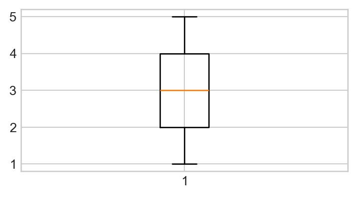 plt.boxplot(y);(be sure to include the semicolon!). With any luck, your plot should look like: