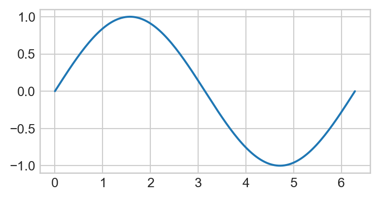 Finally, I’d like to take a quick detour from descriptive statistics and talk about how to plot a function using Python. As a concrete example, let’s try and plot a sine curve from \(0\) to \(2\pi\).