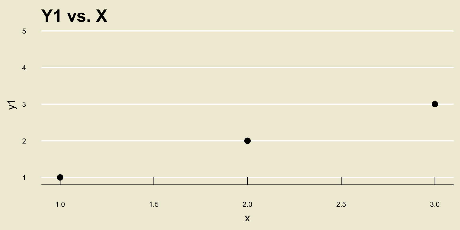 Indeed, \(\overline{x} = 2 = \overline{y}\) and \(s_X = 1 = s_Y\), meaning \[\begin{align*} r & = \frac{1}{3 - 1} \left[ \left( \frac{1 - 2}{1} \right) \left( \frac{1 - 2}{1} \right) + \left( \frac{2 - 2}{1} \right) \left( \frac{2 - 2}{1} \right) \right. \\ & \hspace{45mm} \left. + \left( \frac{3 - 2}{1} \right) \left( \frac{3 - 2}{1} \right) \right] \\ & = \frac{1}{2} \left[ 1 + 0 + 1 \right] = \boxed{1} \end{align*}\]